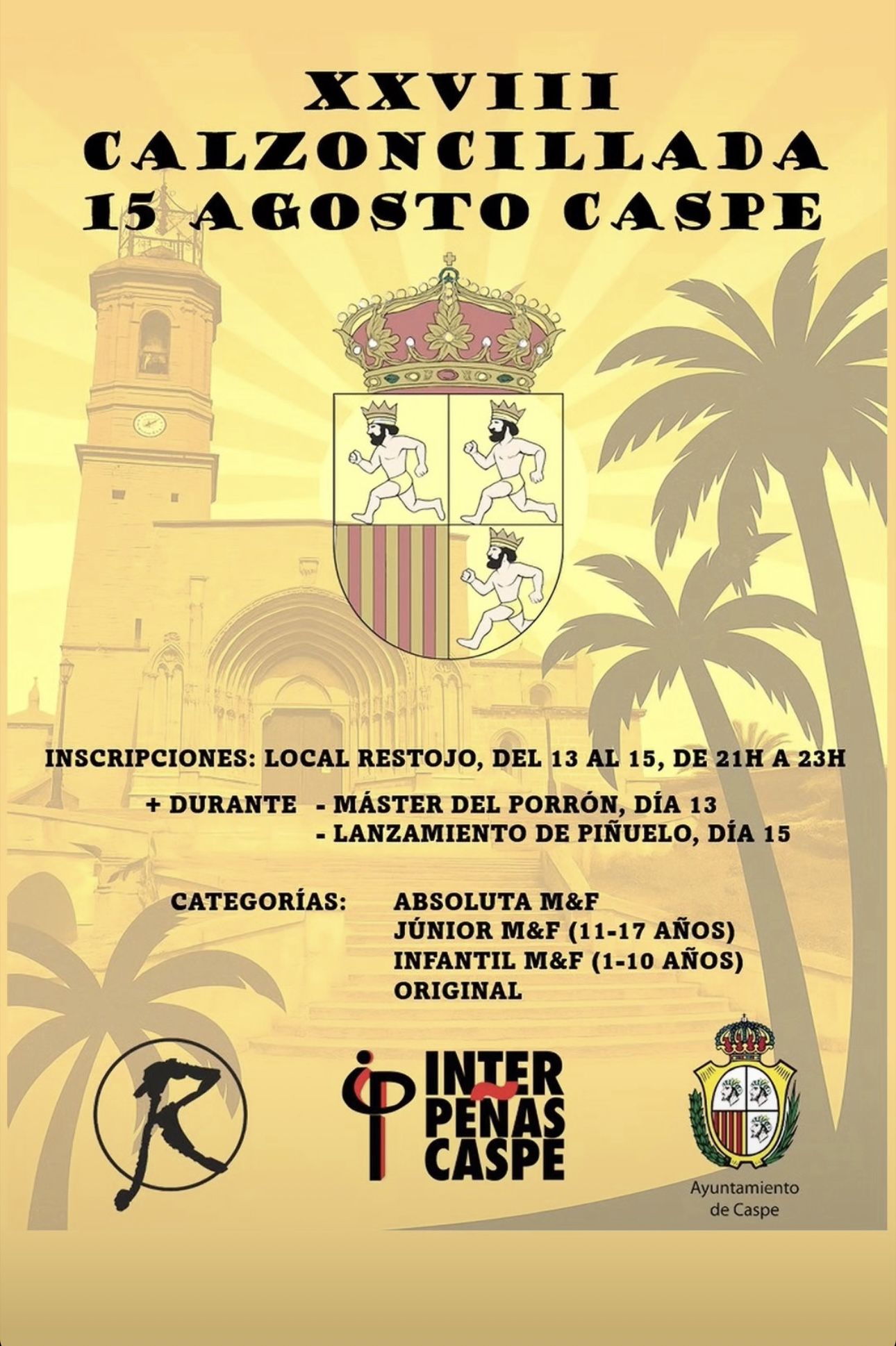 Dentro de la programación de las Fiestas de San Roque 2025 se encuentra la XXVIII edición de la popular Calzoncillada, organizada por Interpeñas Caspe con la colaboración del Ayuntamiento de Caspe.